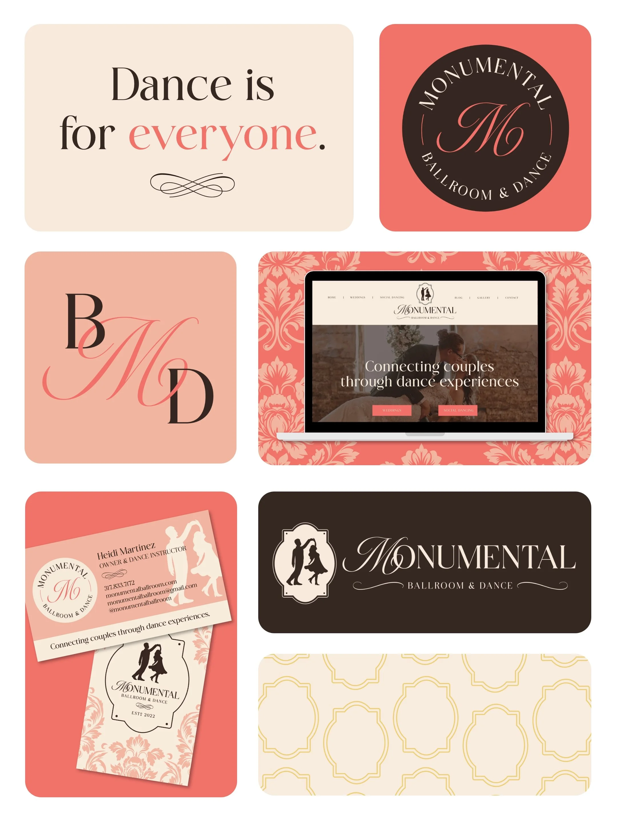 The Brief: After working in and around dance studios her whole career, Heidi Martinez realized that there was an opportunity to create an environment for dancers of all styles and skill levels that was less intimidating than the traditional approach. So she set out on her own to create a safe incubator space for couples who want to learn how to dance and find connection through movement whether they are planning for a wedding or a date night. After a few years of growth, Heidi decided to invest in her branding so that it matched her vision, mission, and values of connecting couples through dance experiences.